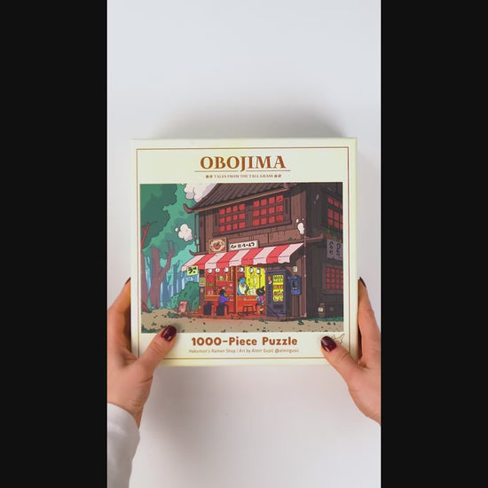 This 1000 piece puzzle features high-quality pieces and features beautiful art straight from Obojima: Tales from the Tall Grass made by the artist Alexander Cloos.
